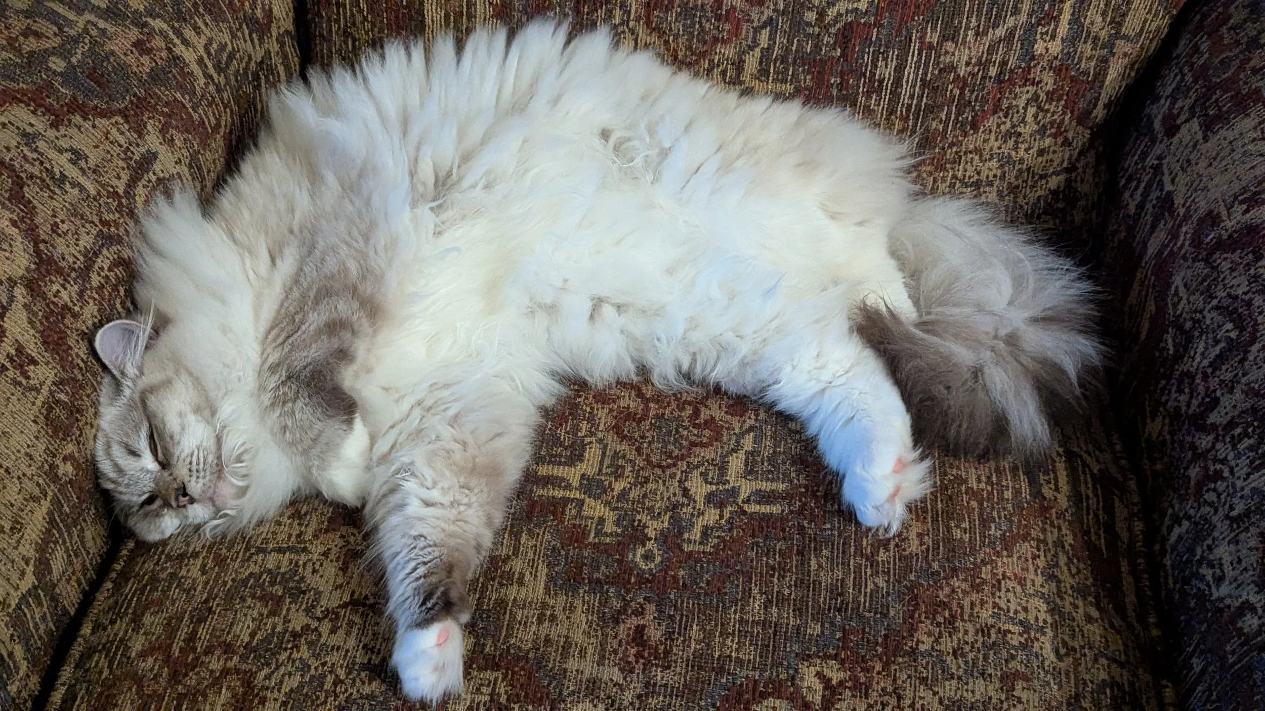 Josephine is our seal tabby mitted. She has collected so many nicknames around here. She is known as Fifi, Fifi baby, Phoebe (Fifi Baby mixed), Beefy (Phoebe backwards), Beefy Butters and because she hangs with Charlotte whom we call Chuck- she occasionally gets called Chuck Roast! Josephine is the ultimate in kindness. Every creature in this home adores her. Whatever she has they all love! She embodies the Shiloh spirit! We are totally smitten with her. She is tender and nurturing to all the kitties. We think she will make an excellent mama. We are excited to see her develop this year. Fifi has passed all of her health screenings with flying colors and receives the same quality care all of our queens from our reproductive vets. She will be introduced to Jack around the end of August. This will be her first breeding. She is the quietest cat we have. She does not cry out for anything. It may be a challenge to determine her heat cycles. We hope to breed forward her incredible kindness and those adorable tabby markings. She may need extended time with our King. He won’t mind at all!